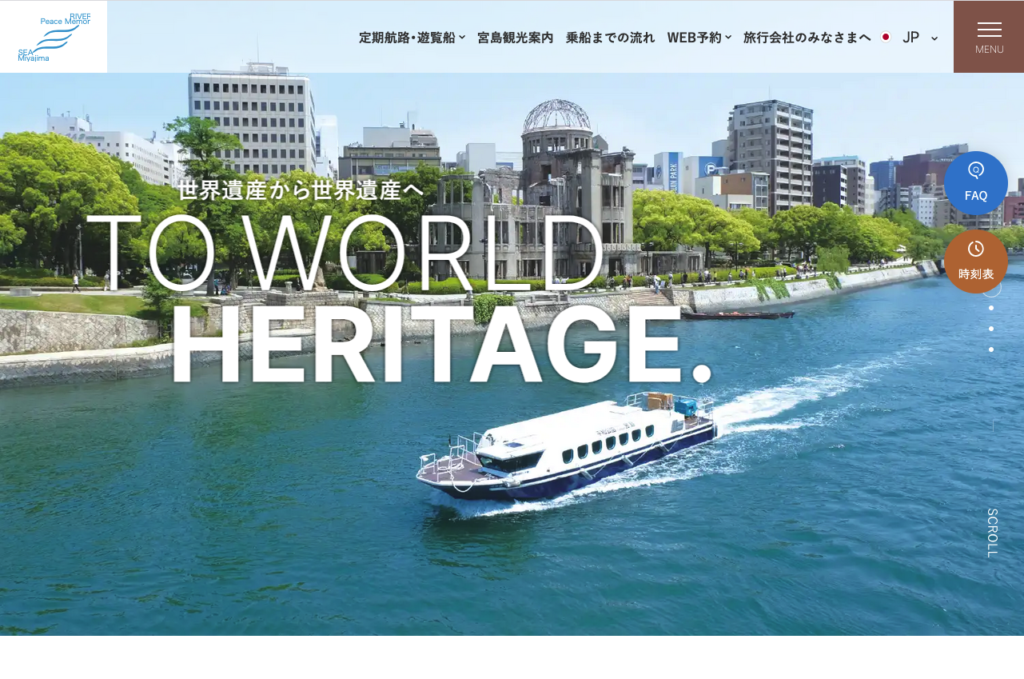 平和公園と宮島を結ぶ、「ひろしま世界遺産航路」を中心に、広島の海の魅力を国内外に届けるアクアネット広島様の公式サイトリニューアルを担当しました。