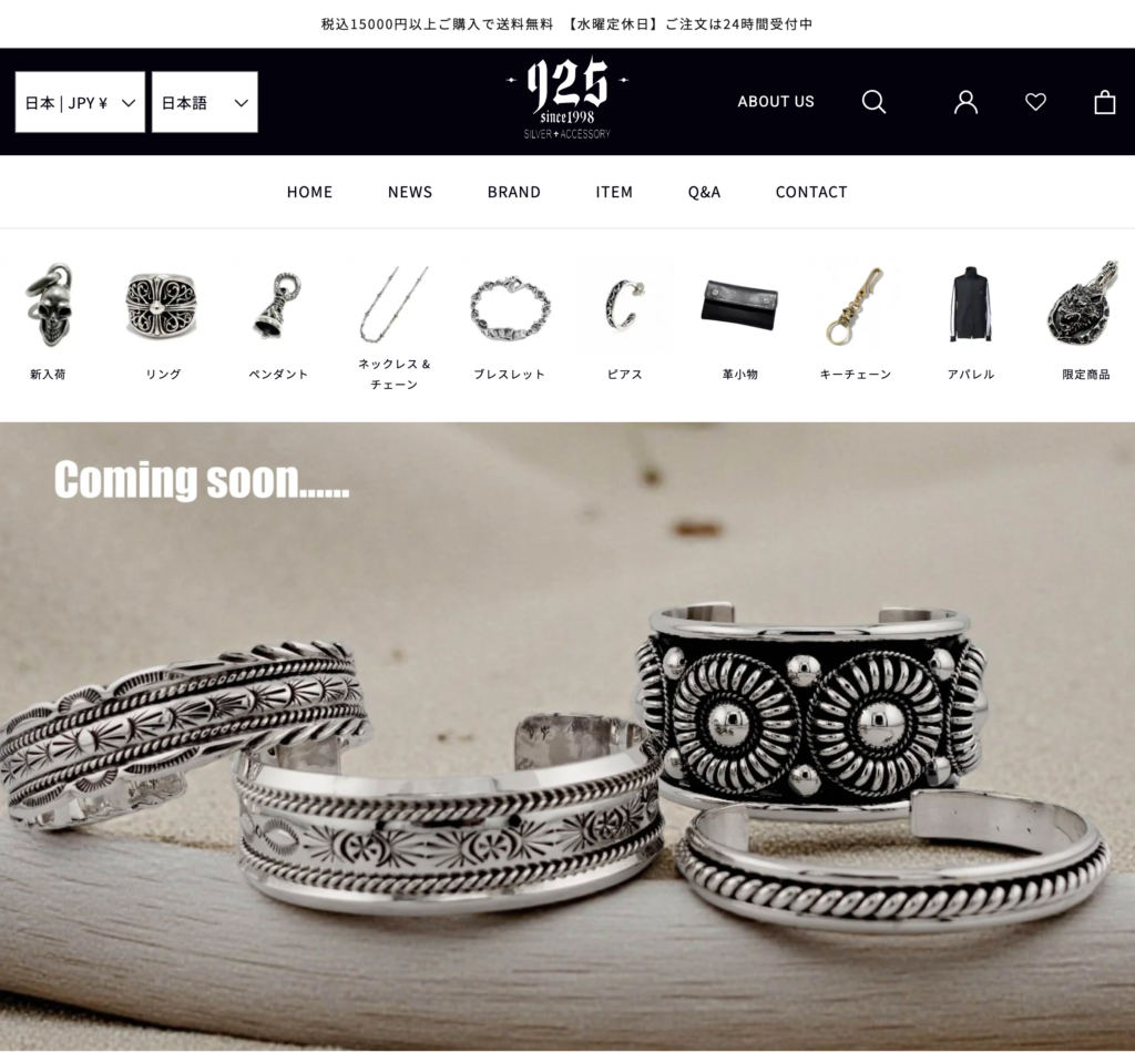 【制作実績】シルバーアクセサリー専門店「シルバー925」様 公式ECサイト構築(Shopify)